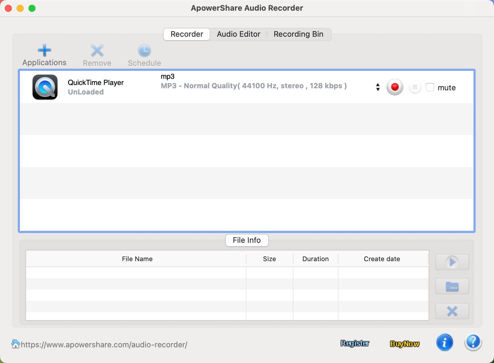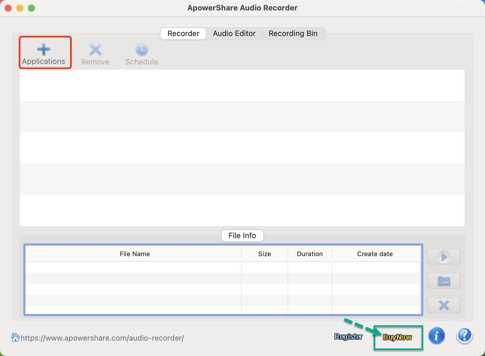 When you launch ApowerShare Audio Recorder under a free trial, if you want to unlock all features, please hit "Buy Now" to get a license if you don't have one.